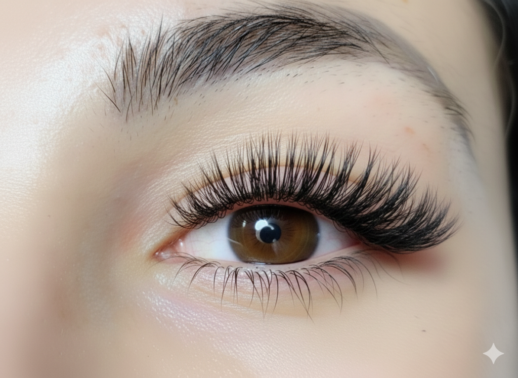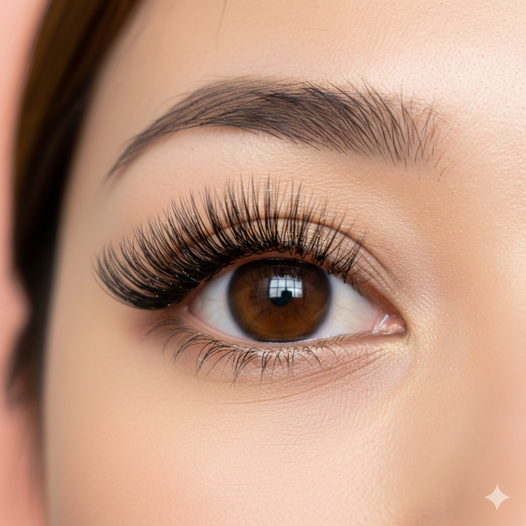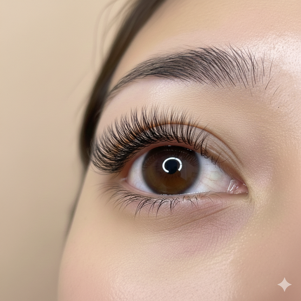 Once the full set is complete, lashes are carefully brushed and shaped. A gentle mist or nano mister may be used to help cure the adhesive and soothe the eye area. Your artist will check for even spacing and comfortable placement before you open your eyes.
